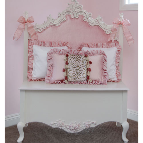Exquisite furniture pieces that every princess needs! Hand appliqued with of roses, cherubs and intricate scrollwork make these pieces the epitome of envy! Finishing touches include hand applied layers of gold leafing and glazes. Add a little "bling"with the addition of hand applied Swarovski crystal jewels for the ultimate in posh! An heirloom piece that will surely be passed down for generations, the French Rose Bench is timelessly tasteful, in soft pink shades and ornate embellishments.