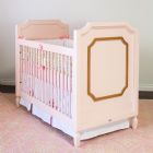 Inspired by Hollywood regency designs, the Beverly Crib with Mouldings brings a touch of glamor to your nursery. This crib is made of sturdy hardwood and utilizes dual level fixed gates and the ability to convert to a toddler bed.