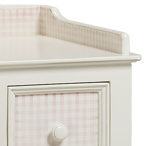 The Vintage Changer is a sweet and charming piece for the nursery, offering five dovetailed, stainless steel glide drawers to store clothing and baby supplies with space on top for a changing pad. Features soft close glides to keep fingers safe. crafted from 100% hard woods. Beautiful coordinating pieces are available.