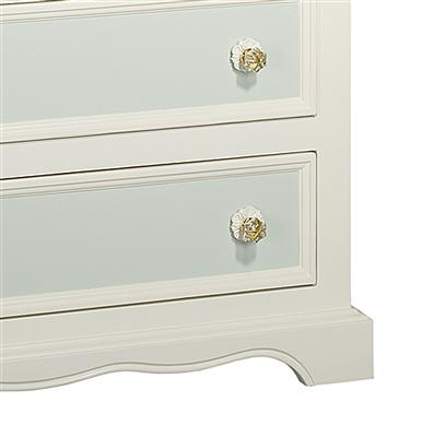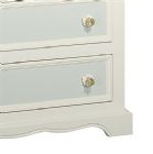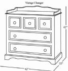 The Vintage Changer is a sweet and charming piece for the nursery, offering five dovetailed, stainless steel glide drawers to store clothing and baby supplies with space on top for a changing pad. Features soft close glides to keep fingers safe. crafted from 100% hard woods. Beautiful handpainted motif depicts a playful bunny and duck. Many coordinating pieces are available.