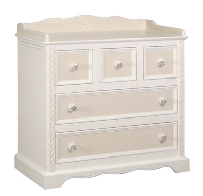 The Vintage Changer is a sweet and charming piece for the nursery, offering five dovetailed, stainless steel glide drawers to store clothing and baby supplies with space on top for a changing pad. Features soft close glides to keep fingers safe. crafted from 100% hard woods. Beautiful coordinating pieces are available.