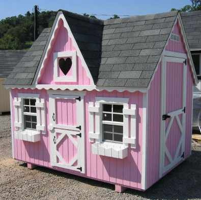 The Victorian Playhouse is a classic beauty. This playhouse comes in several sizes and boasts fancy gingerbread trim and a cute heart-shaped window. This house is perfect from homemaker, to career woman, to princess! These panelized kits come pre-assembled, primed, and ready for paint! Panelized means the walls are in prefabbed sections, everything else is precut and labeled for you! NO EXTRA CUTTING! With these kits, the customer provides the shingles, drip edge, and paint. An exceptional manual will also be included. 2x3 Stud Framing – 2 working 14x21 windows with safety glass and screens – 2 Flower boxes - Both child (20”x40”) and adult door (34”x61”) – Floor Kit is included – Customer provides: shingles, drip-edge, & paint. The Victorian Playhouse Available Sizes