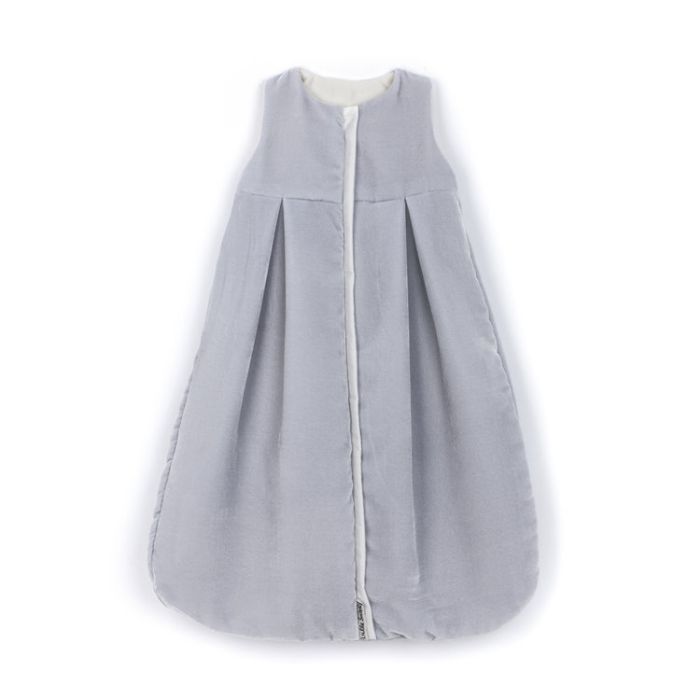 Keep your baby cozy and safe in this soft and luxurious sleep sack constructed of Blue silk velvet, embellished with an ivory taffeta flange, and lined in a luscious organic French Terry Fleece. To be worn over onesies or pajamas. Ample room to allow for kicking. A full length zipper allows easy access for diaper changes. Machine washable.