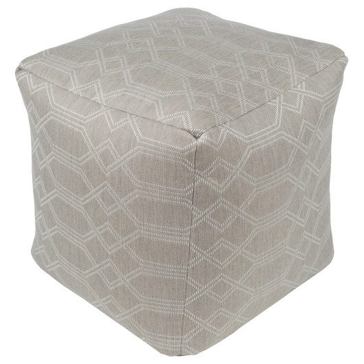 The Surya Oak Cove pouf's geometric pattern gives sophisticated comfort. Available in 6 colors.