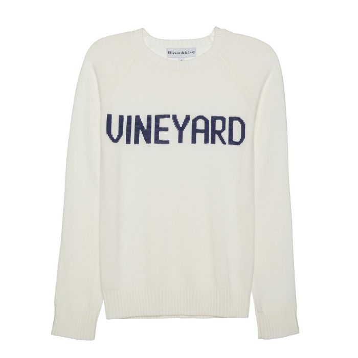 Introducing our VINEYARD Women's Sweater! In slightly off-white with navy lettering. It coordinates with our adorable MVY children's sweaters!