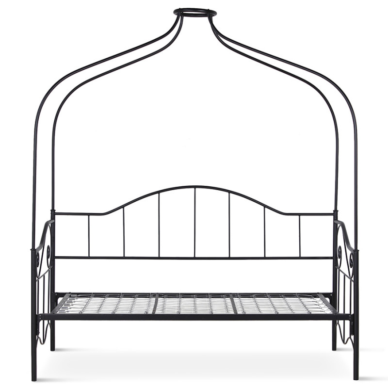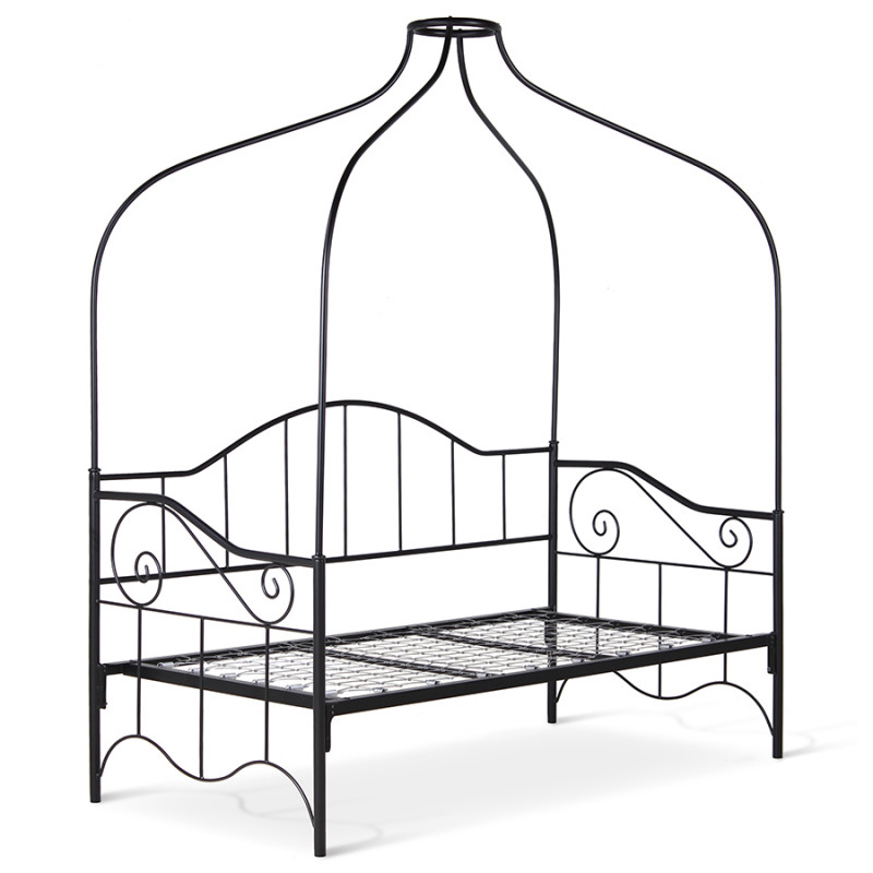 Metal canopy daybed with hand forged scroll accents. Shown with a spring unit.