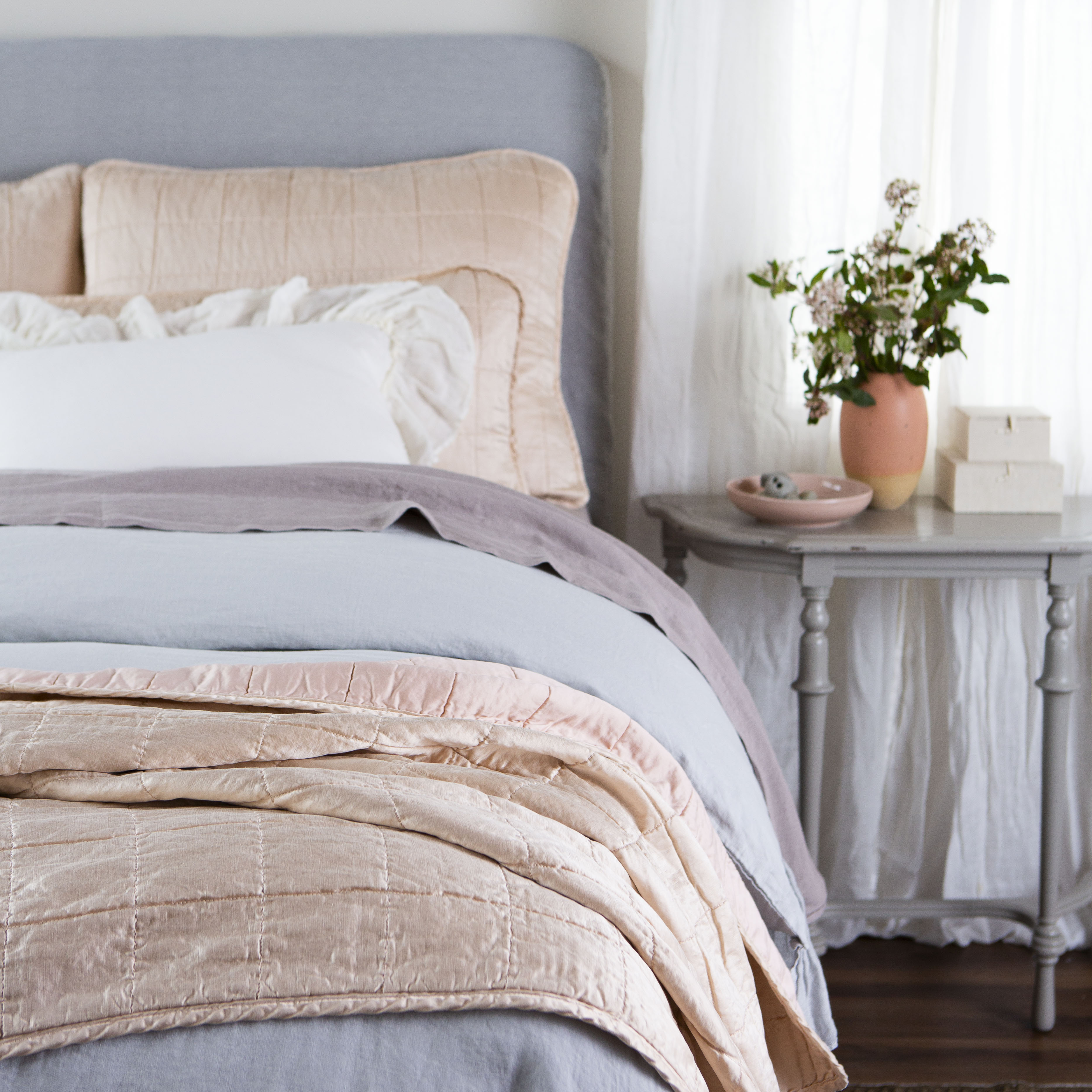 Sel & Linen in Pearl, Mineral & Fog Bella Notte Linens Bedding